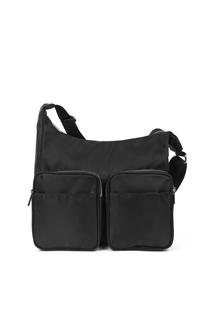 En praktisk crossbody veske med mange rom. Vesken lukkes med glidelås, og i hovedrommet er det en innerlomme med glidelås hvor du kan oppbevare mindre gjenstander. Vesken har også tre utvendige lommer slik at du kan organisere eiendelene dine. Stroppen er regulerbar. Laget i 100% sertifisert resirkulert materiale.