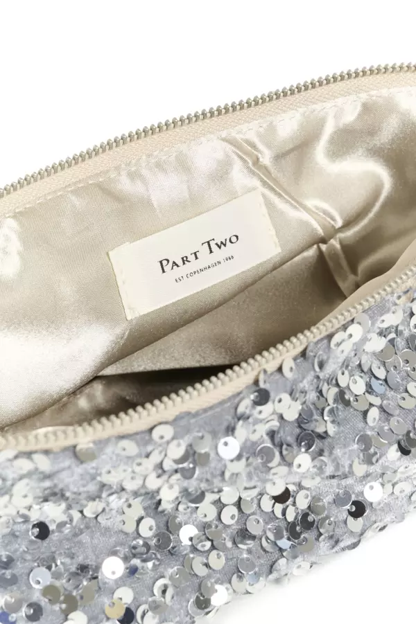 Denne glitrende clutchen er det perfekte tilbehøret når du vil tilføre antrekket ditt et hint av glamour. Den er dekket av paljetter og har et satengfôr på innsiden. Vesken lukkes med en glidelås, og den praktiske hempen lar deg bære den rundt håndleddet.