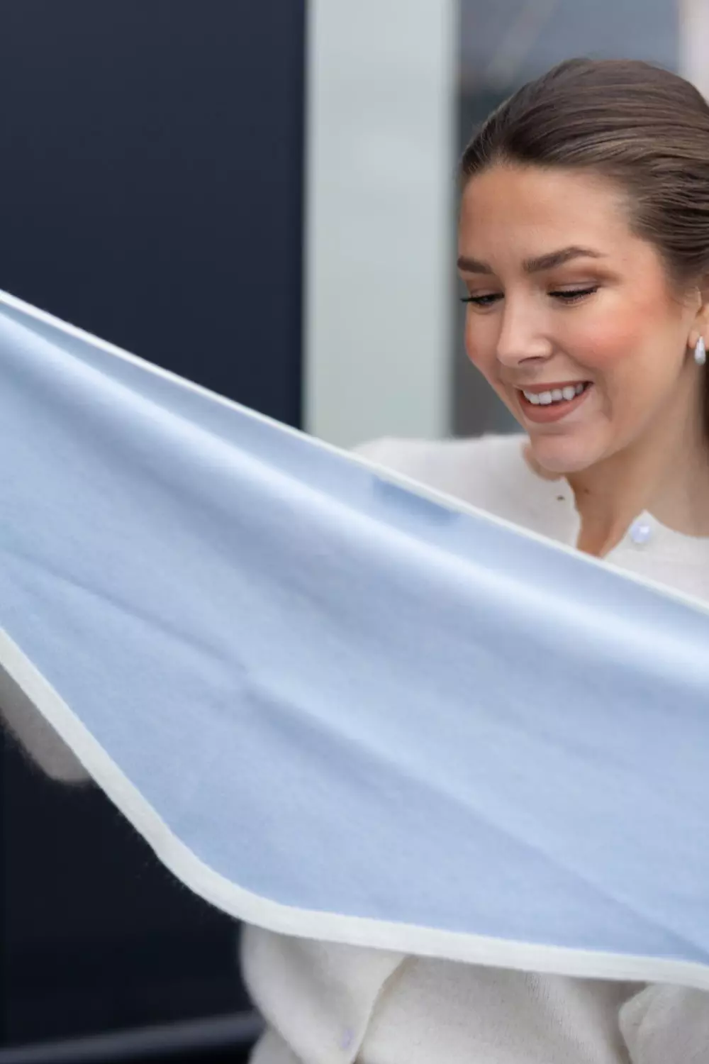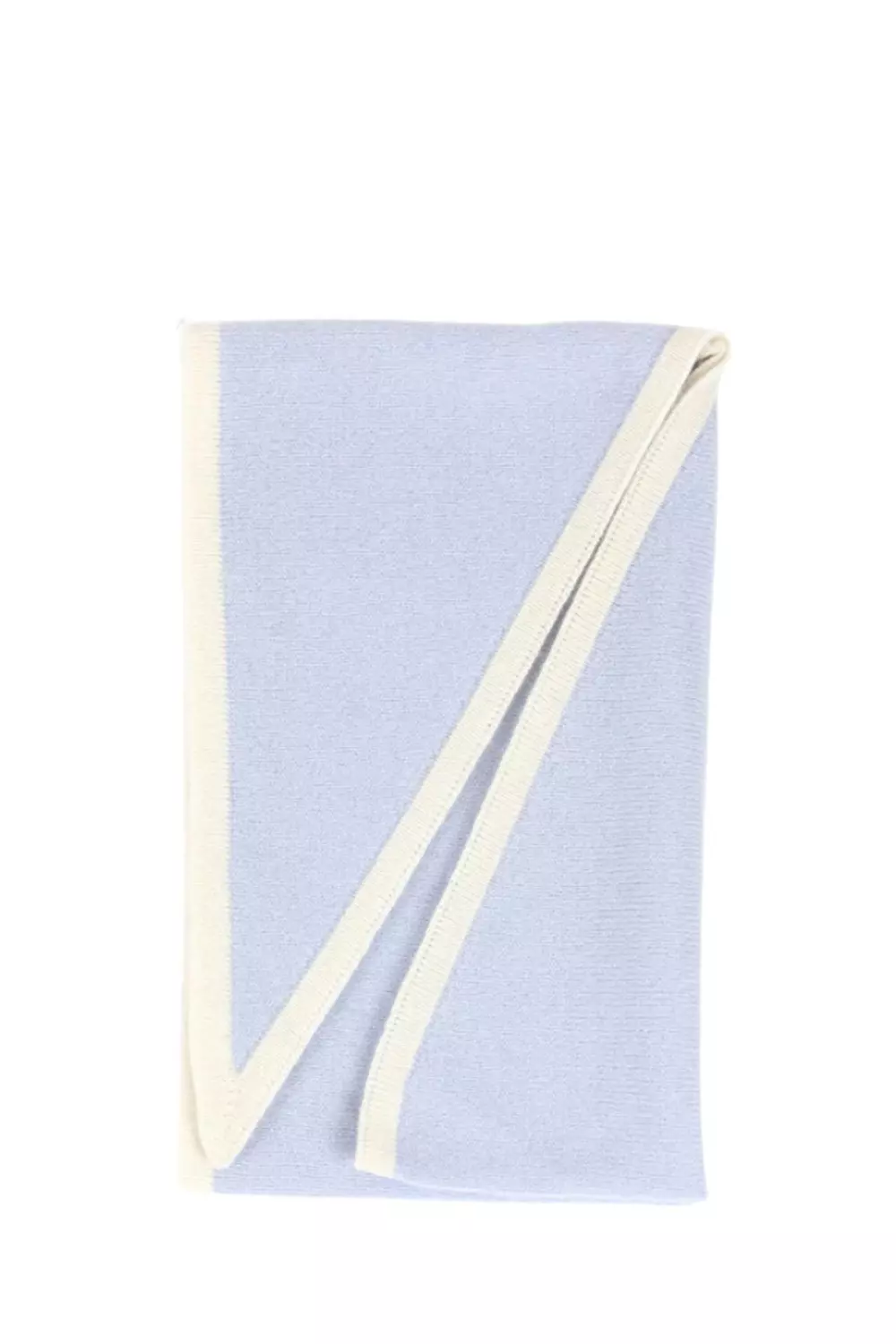 Et nydelig triangelskjerf med kontraststripe i kanten.