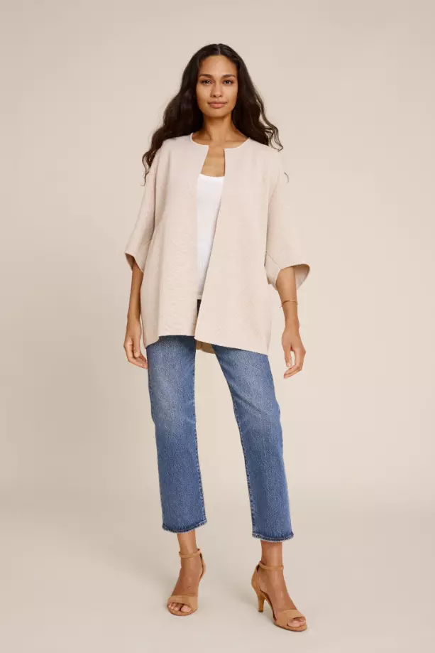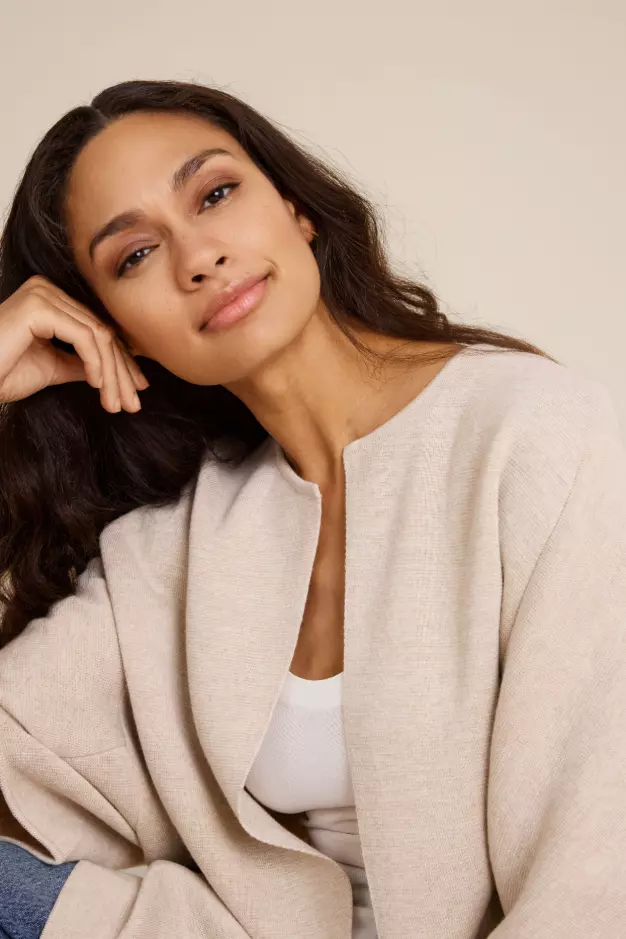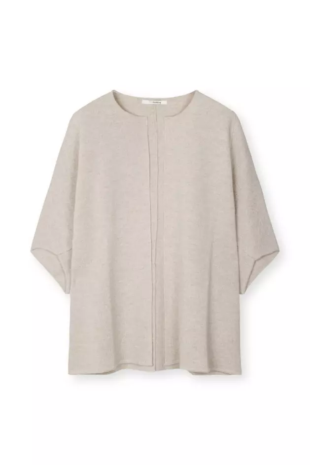 «Evi» fra danske Sibin Linnebjerg. En avslappet cardigan i poncho-stil. Deilig merinoullblanding. En rund hals og korte vide ermer. Cardiganen er oversized i passformen.