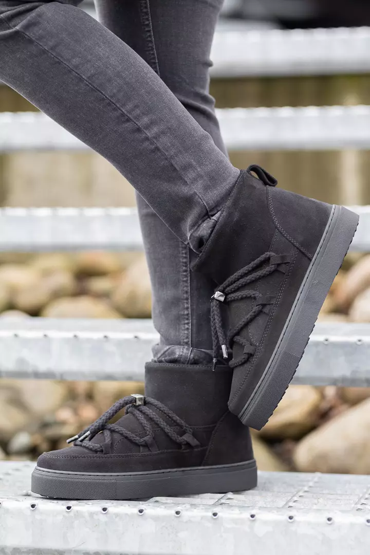 «Inuikii classic low» er en deilig vintersko med varmt saueskinn. Den har en solid såle for godt grep på vinterføre. Fôret med saueull og har en semsket ytterside.