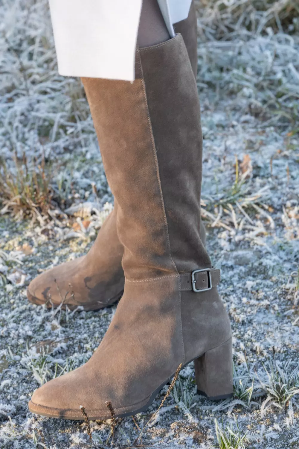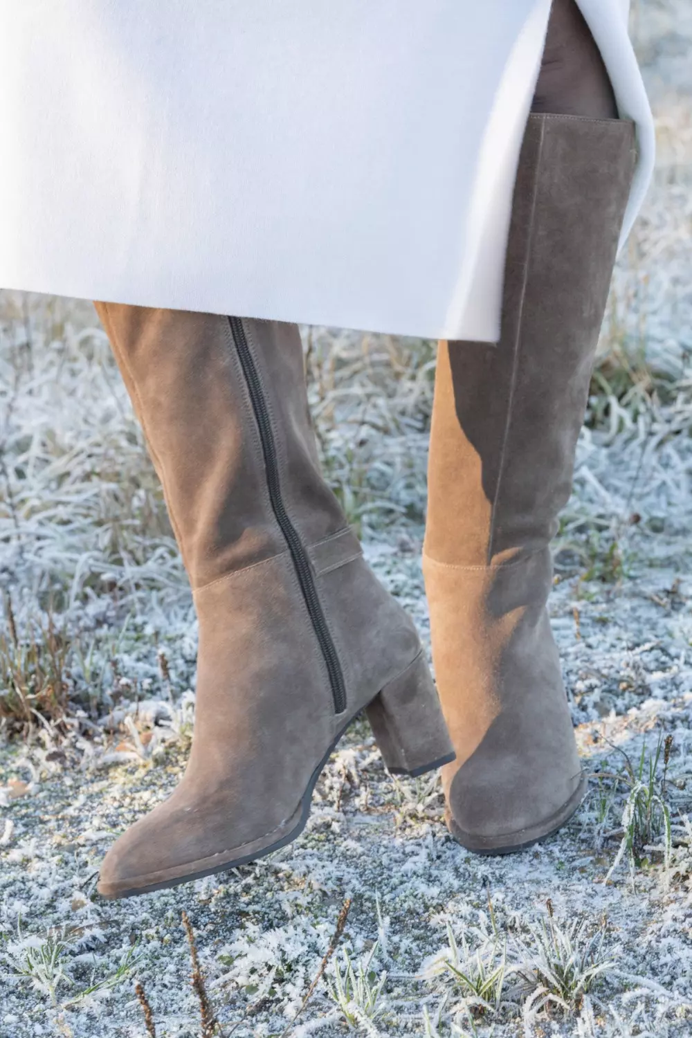 En lekker støvlett i semsket skinn med avrundet tå og kraftig hel som gir både høyde og stabilitet. Spennedetaljen ved ankelen tilfører et røft preg, mens glidelåsen på innsiden gjør den enkel å ta av og på. Et perfekt valg for deg som vil kombinere komfort med stil.