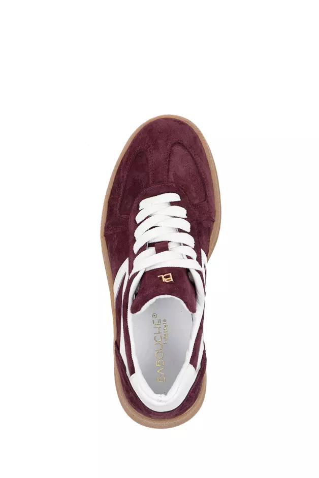 Disse stilige sneakersene fra Babouche i en lekker burgunder og hvit fargekombinasjon i semsket skinn er et must-have for høsten. Den brune gummisålen er superlett, noe som gir en behagelig og lett følelse når du går.