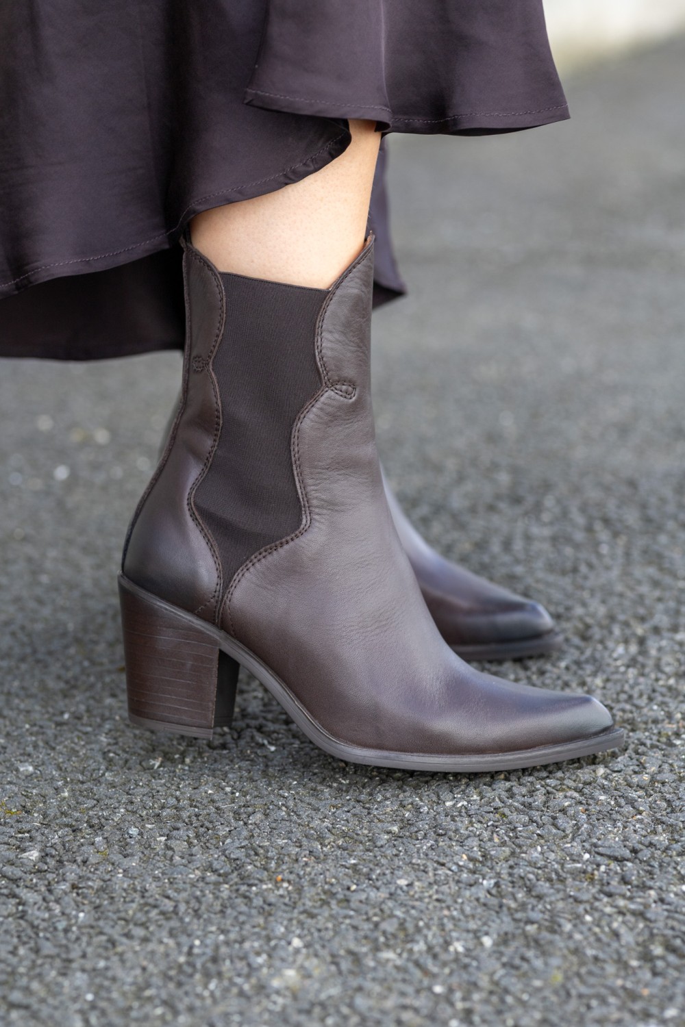Cowboy-ankelstøvletter med spiss tå og bred hæl gir en perfekt miks av western-vibe og komfort. Hvis du er ute etter noe som både ser rålekkert ut og føles godt på foten, er dette skoen for deg!