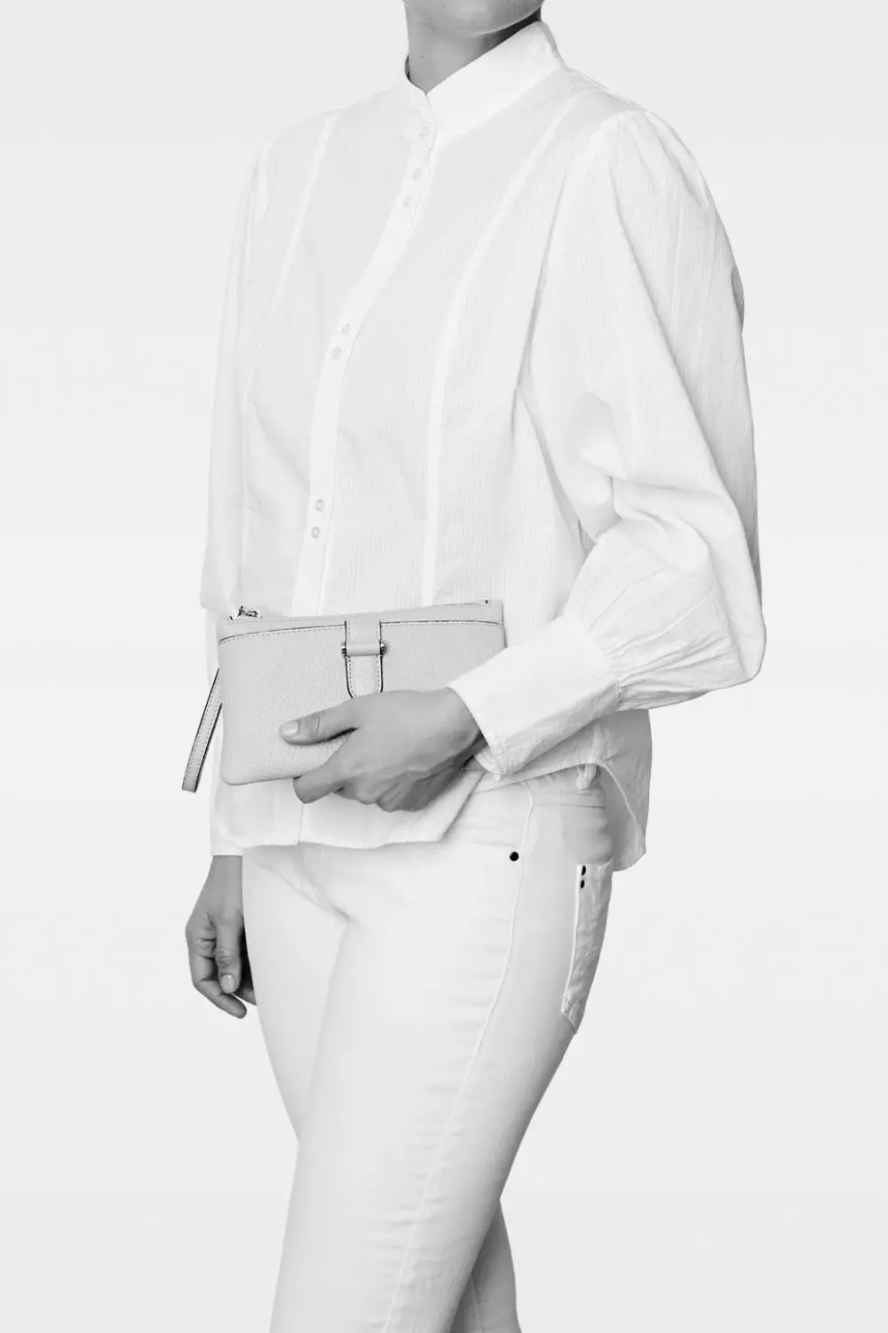 Mandy purse er en elegant liten clutch med håndleddsreim. Den lukkes med glidelås. Metallet er bådet sølvfarget og gullfarget. Ytterlommen lukkes med en magnetlås. Inni clutchen finnes det en sidelomme med glidelås. Den liille størrelsen gjør den perfekt å benytte til fest, eller oppi en større veske.