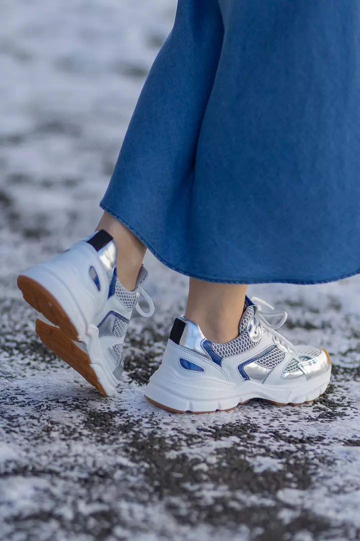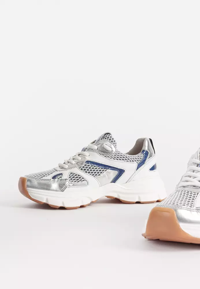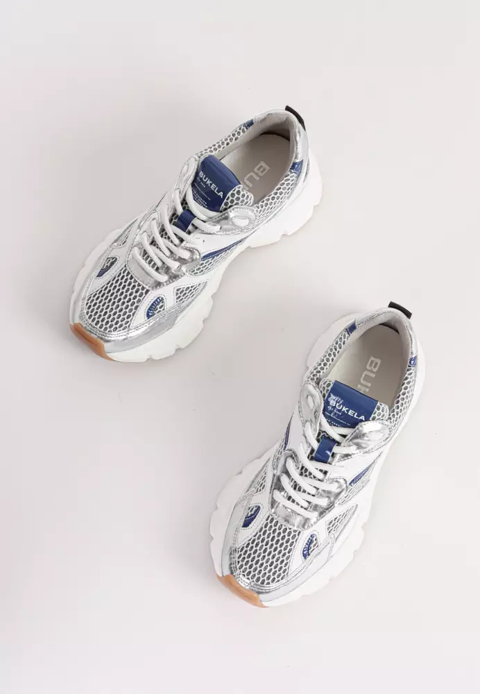 «Matt» fra Bukela har nå kommet inn i nye farger for våren. En sneakers med blanding av tekstil og skinn for et sporty, men samtidig stilig uttrykk. Sneakersen er i hvit, sølv og blå. Den er normal i passformen.