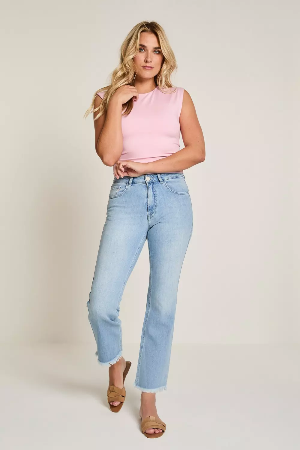 «Mila Mini Flare» jeans fra Para Mi er en moderne og feminin jeans med høy midje og kick flare-ben, perfekt for deg som ønsker en flatterende passform med et trendy uttrykk. Den smale passformen over hofter og lår kombinert med lett utsving nederst gir en elegant silhuett som passer like godt til hverdags som til mer pyntede antrekk.