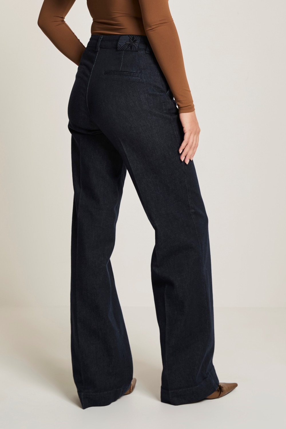 «Mira» fra ParaMi i fargen deep indigo er en mørk klassisk denim. Buksene er høye på livet og har vide rette ben. Stretchen «husker», det vil si at den trekker seg sammen etter bruk. Du vil ikke oppleve at denne får knær etter en lang dag på kontoret.