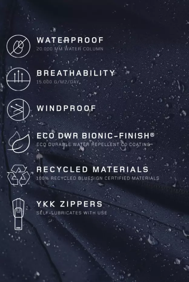 Skapt for nordiske forhold, holder denne jakken deg varm og beskyttet helt ned til –20. Det er din trofaste følgesvenn når kulda biter og stilen skal bevares. Jakken har en vannsøyle på 20 000 mm og teipede sømmer for å hindre vanngjennomtrengning. Dette gjør jakken 100% vanntett.