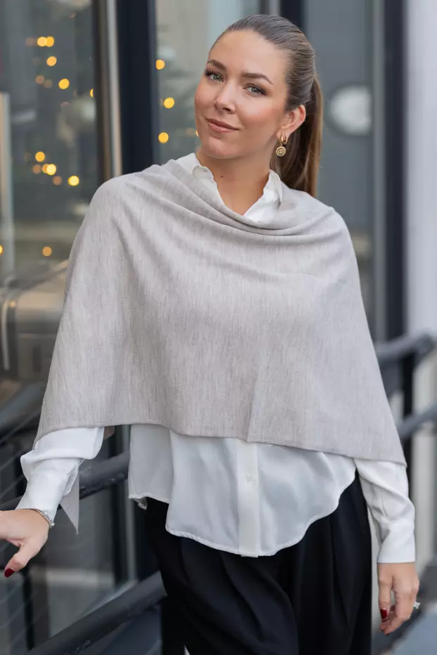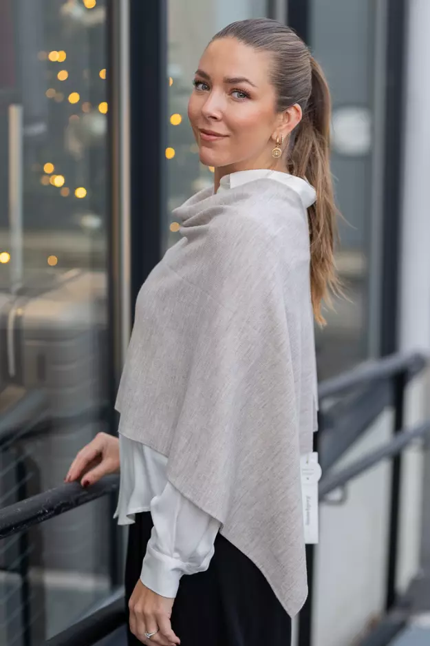 «Paris» fra Sibin Linnebjerg. En klassisk beige poncho i florlett merinoull. Denne er lekker både til pent og hverdags.