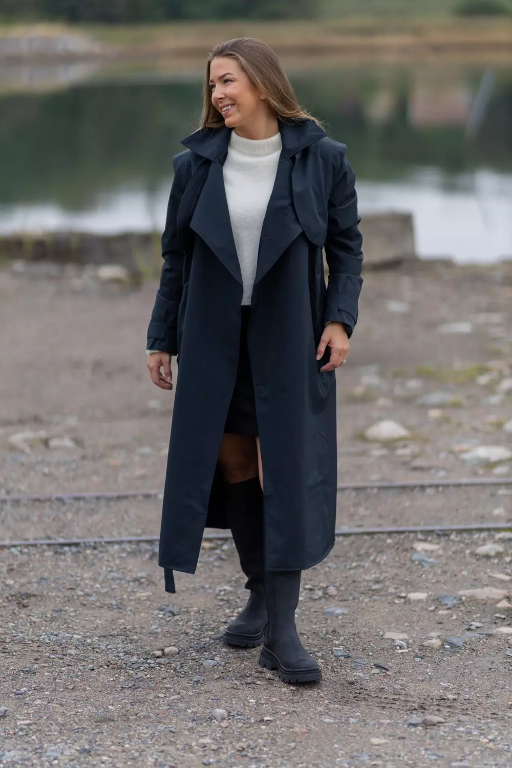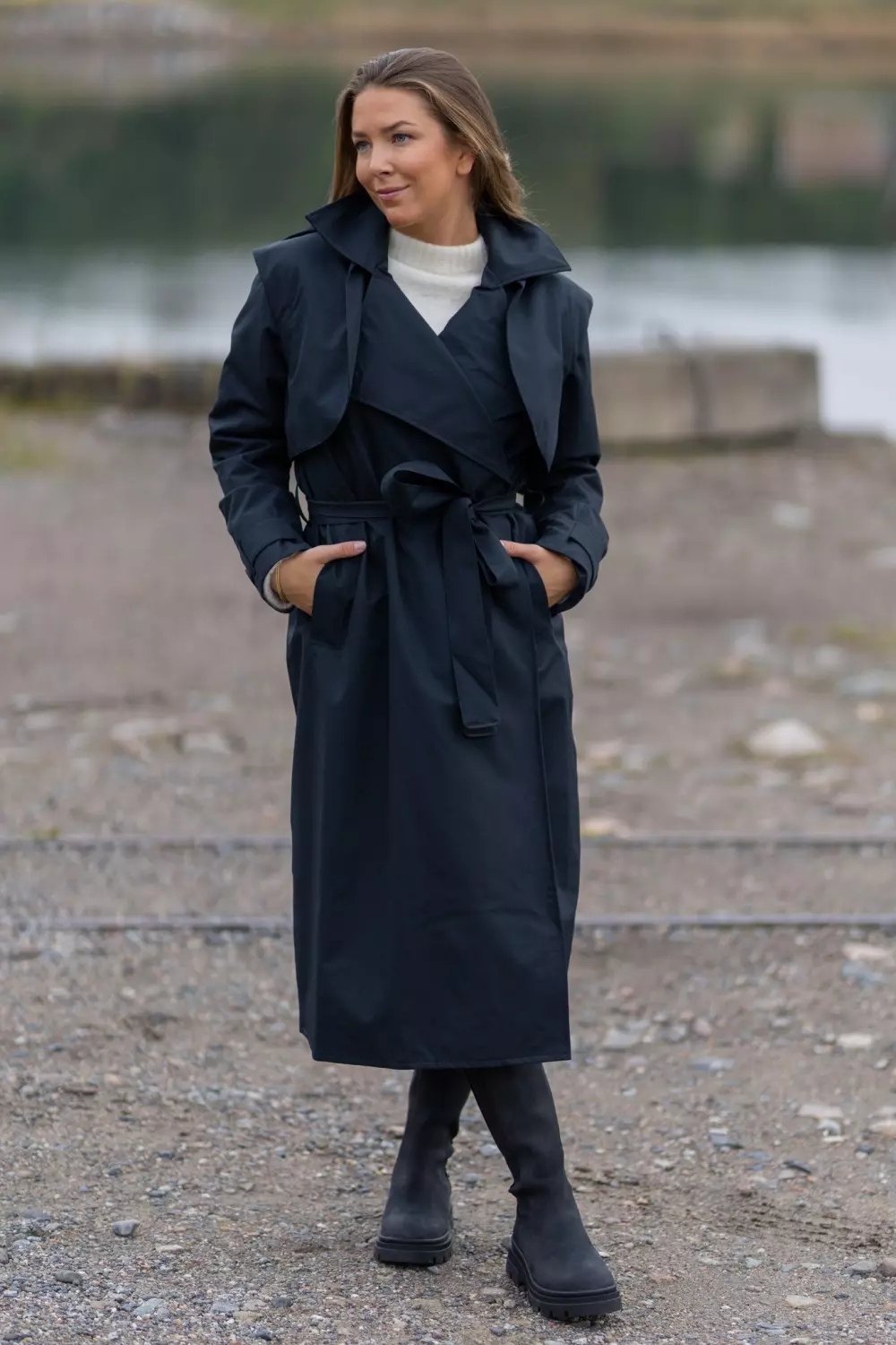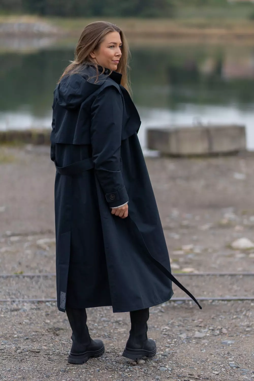 Regndråpe Trench Coat fra BRGN i fargen New Black kombinerer tidløs stil med moderne funksjonalitet. Den er vanntett med en imponerende vannsøyle på 20.000 mm, og laget av resirkulerte tekstiler som gir både miljøbevissthet og kvalitet. Jakken har en avtagbar hette som ligger skjult under kragen, diskrete sidelommer og refleksdetaljer som gir ekstra synlighet. Den magnetiske lukkingen gir et rent og elegant uttrykk, og gjør det enkelt å kle seg pent, uansett anledning. Jakken er designet for å tåle temperaturer helt ned til 0 grader, og passer like godt til hverdagsbruk som til mer formelle settinger.