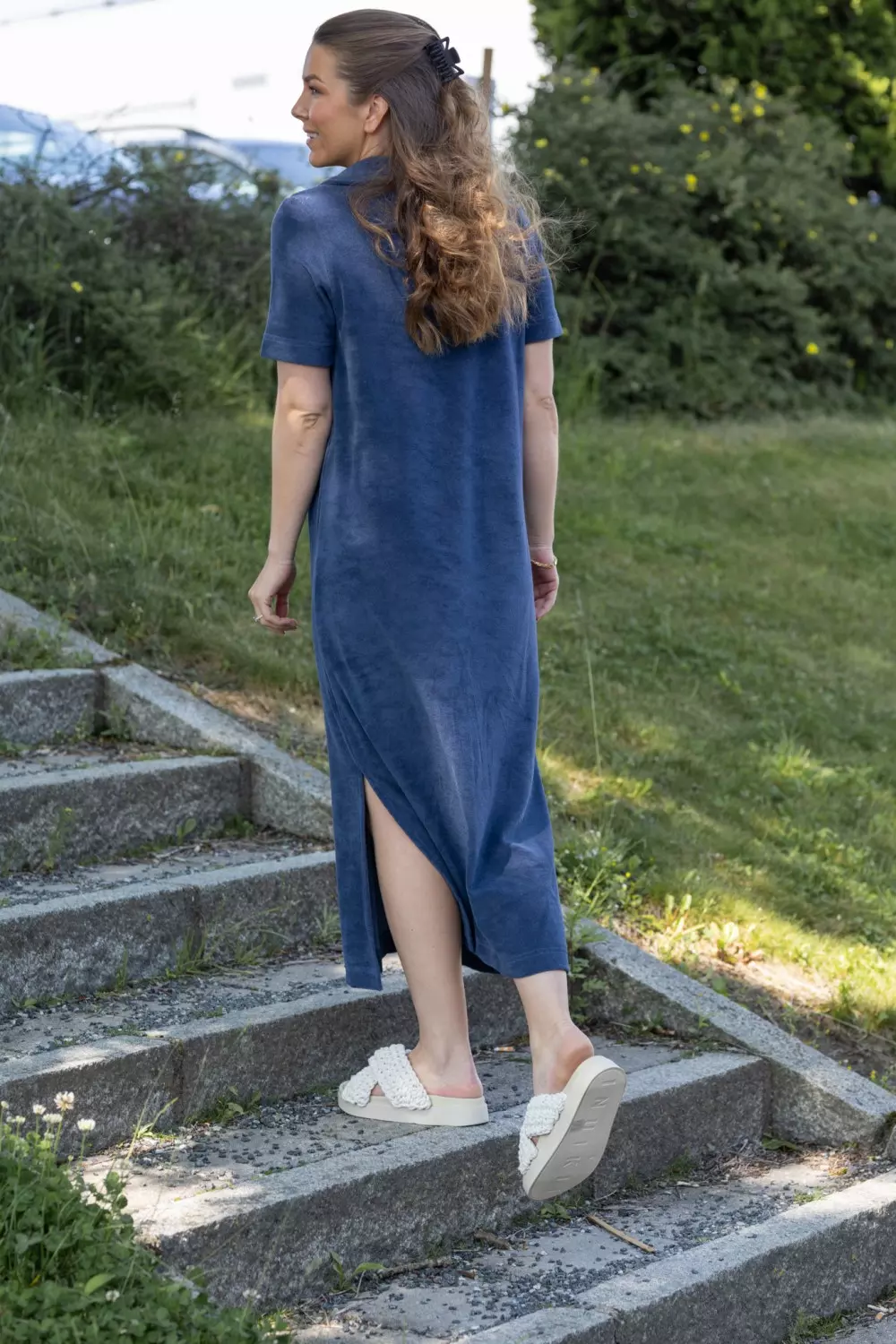«Ruma dress» fra Part Two er en avslappet frottékjole perfekt på late sommerdager. Kjolen har en avslappet passform, v-hals med krage og korte ermer.