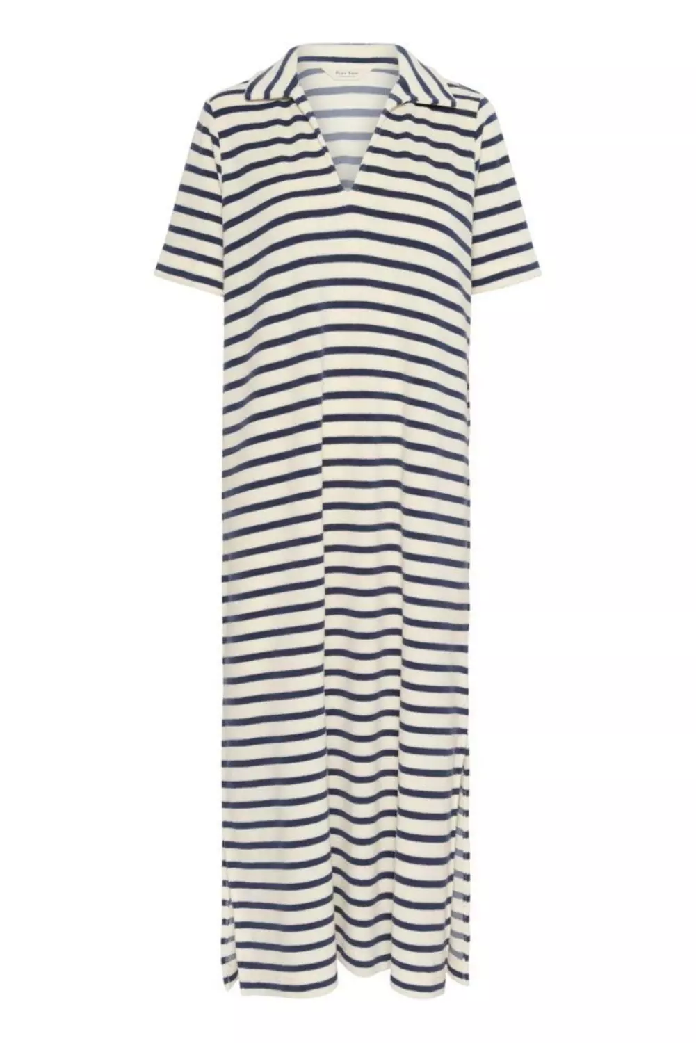 «Ruma dress» fra Part Two er en avslappet frottékjole perfekt på late sommerdager. Kjolen har en avslappet passform, v-hals med krage og korte ermer.