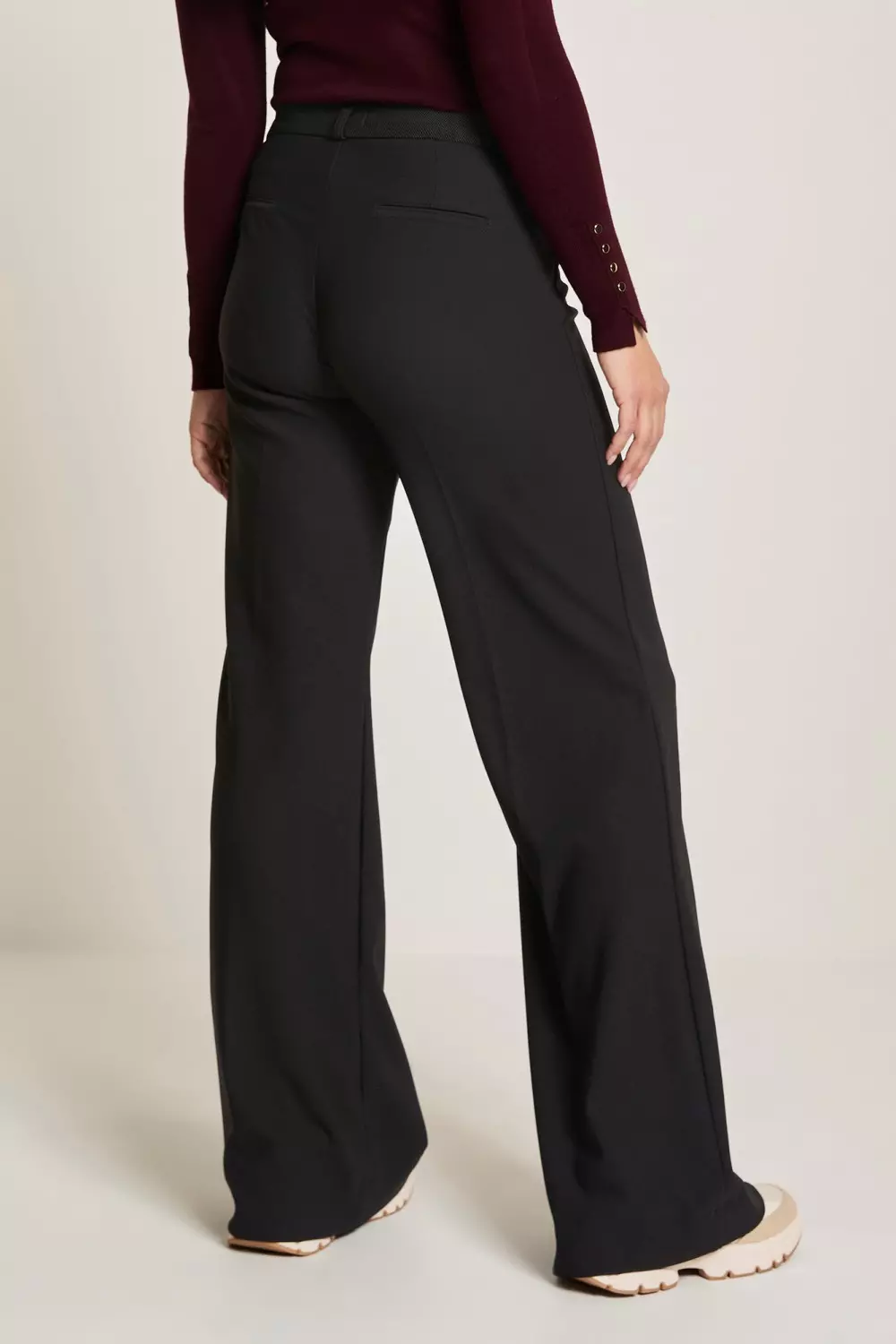 «Scotty crepe» i sort er en stilfull dressbukse med medium høy midje og en flatterende passform som sitter godt over hoftene før den faller ut i ekstra vide, utsvingte ben. De er laget med mye stretch som sikrer god passform og komfort! Et moderne og samtidig tidløst plagg som passer til både hverdag og mer pyntede anledninger.