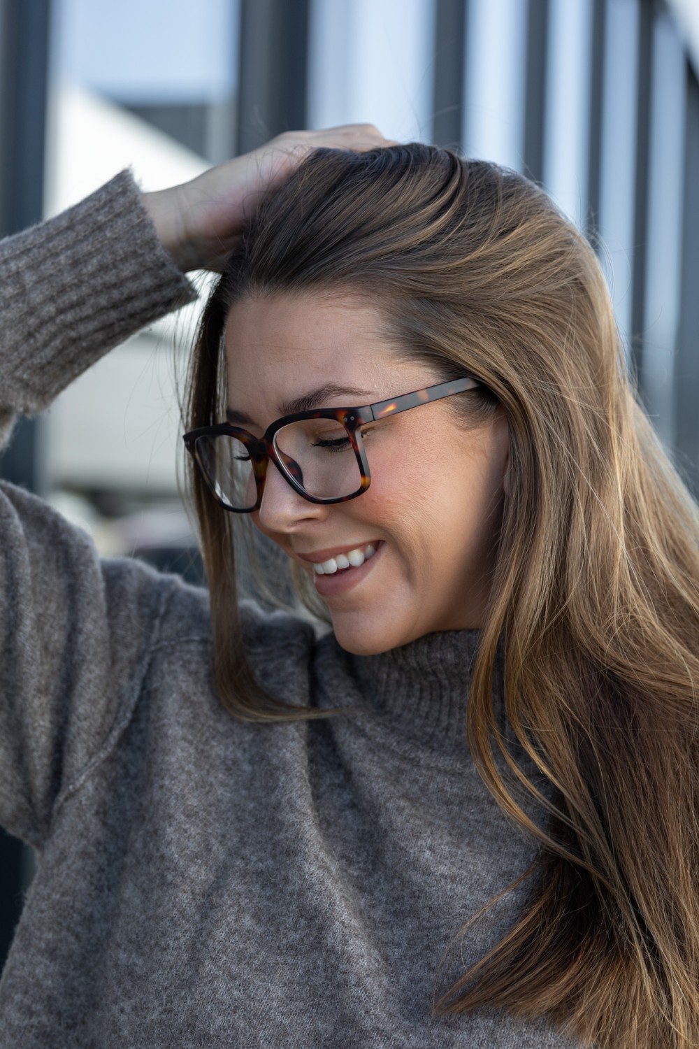 En lesebrille med tortoise ramme. Enten du leser en bok, scroller på mobilen eller ser på en kvittering, gir lesebriller en løsning for å redusere øyetretthet og forbedre lesbarheten. De finnes i fire ulike styrker.