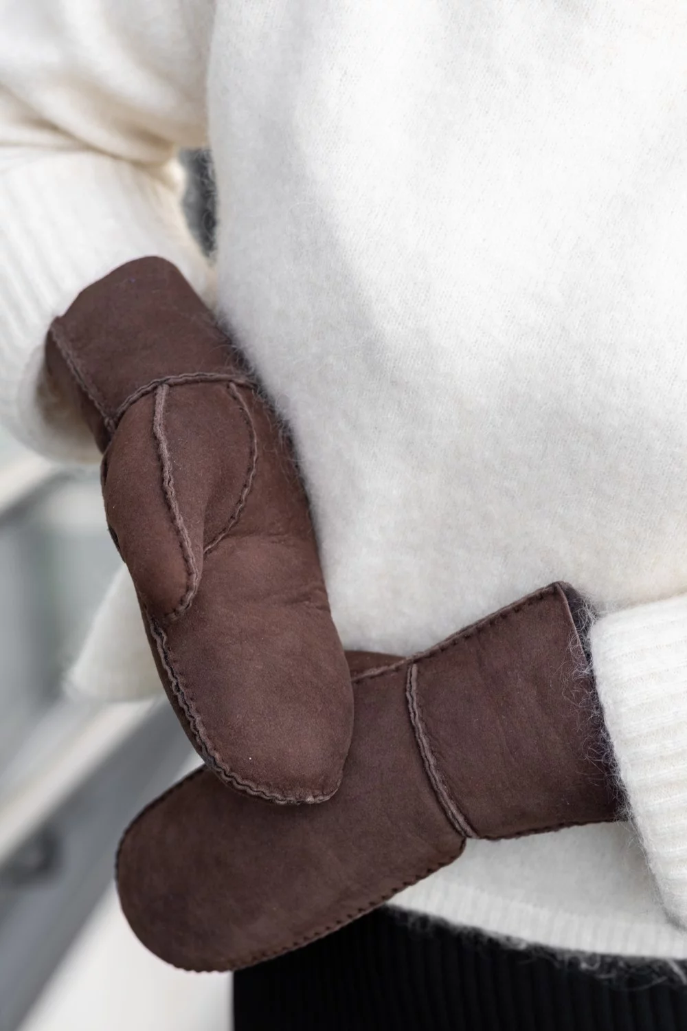 Semskede saueskinnsvotter – Mørk brun