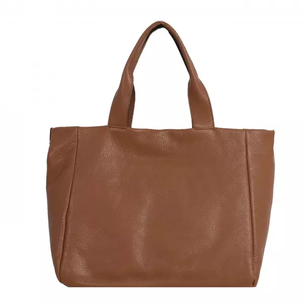 En stor veske med skulderreimer og avtagbar flettet reim. Den har et stort rom med glidelås. Inni vesken er det tre sidelommer, der det ene har glidelås. Italiensk kuskinn