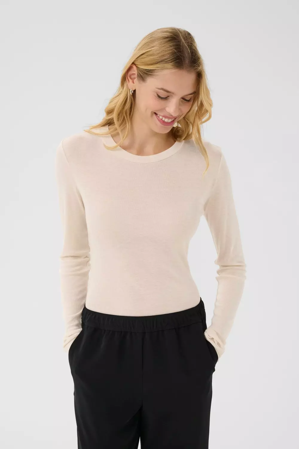 Tinniesi t-shirt fra Part Two. En langermet tettsittende t-skjorte i ullblanding. Den har en rund hals og lange smale ermer som gjør den ideell å style under en blazer eller skjorte.