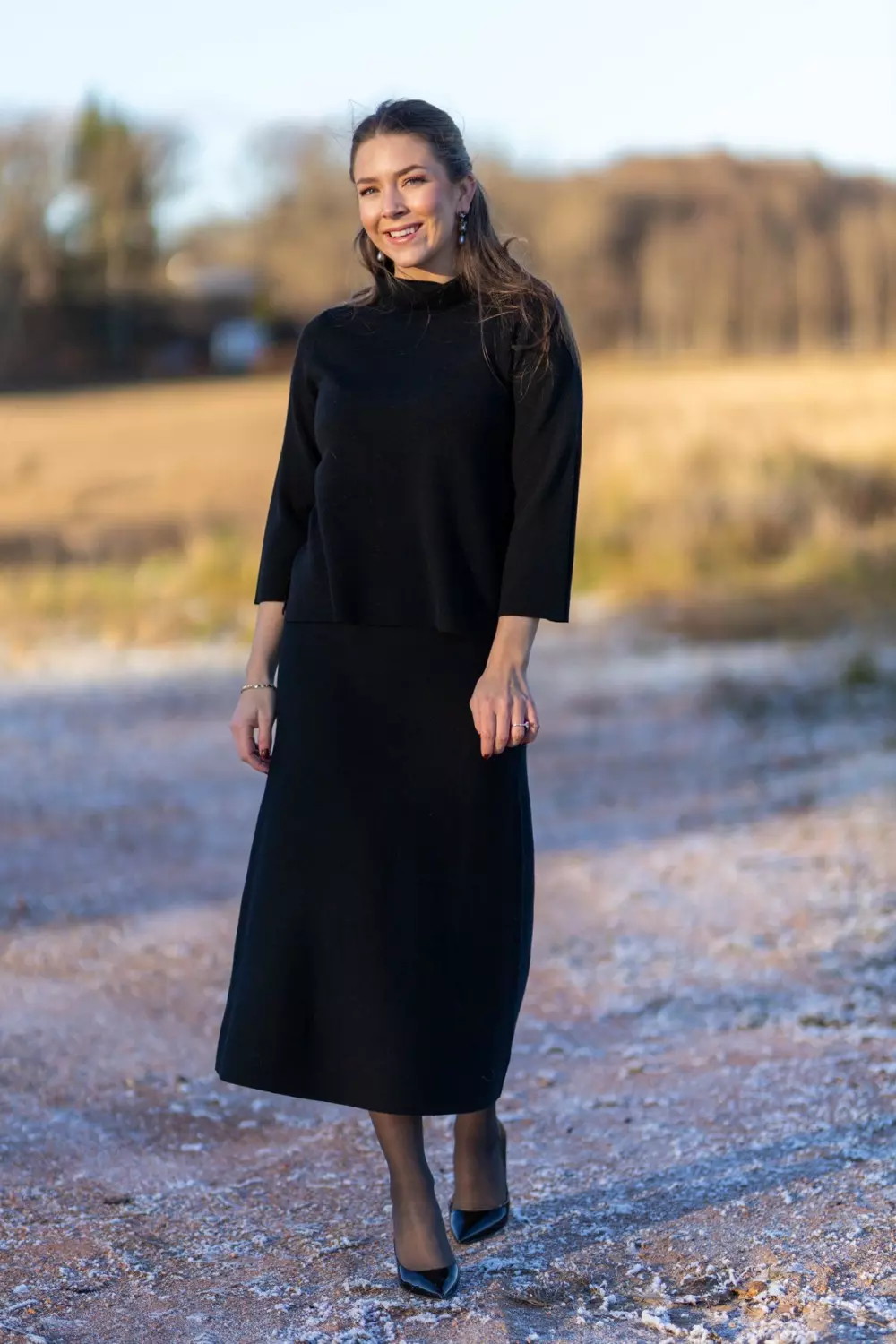«Tulla top» fra Amuse by Veslemøy. En sort genser med trekvart lange ermer og rett passform. Liten splitt i siden og en liten høy hals som tilfører et sofistikert preg. Perfekt sammen med «Amelia skjørtet» i samme farge for et lekkert antrekk.