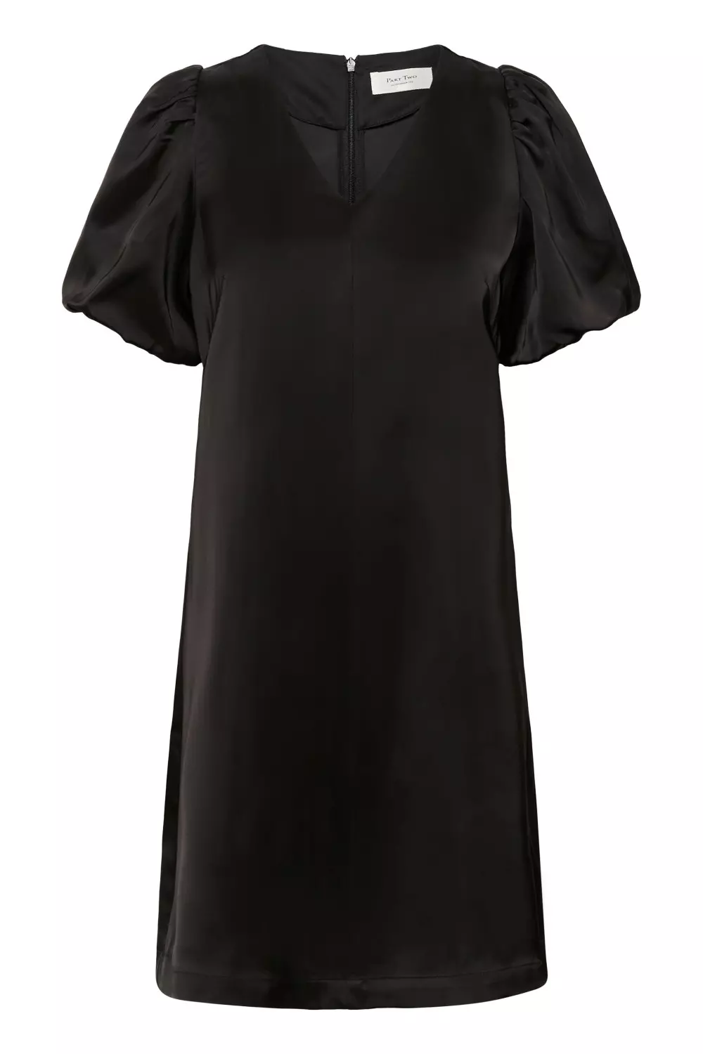 «Ulva dress» fra Part Two. En nydelig grønn satengkjole med elegant snitt. Kjolen har en v-hals, rett silhuett og korte puffermer med strikk. Kjolen er perfekt til vinterens festligheter.